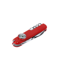 Multifunktionsmesser mit Edelstahl-Zubehör mit 10 Funktionen, beschichtet mit widerstandsfähigem ABS. Enthält Schneider, Schere, Pinzette, Kompass, Nagelfeile, Stechwerkzeug, Korkenzieher, Zahnstocher, Schraubendreher, Dosenöffner und Flaschenöffner.
