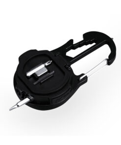 Praktisches Multi-Tool aus robustem Aluminium mit schwarzer Oberfläche und 12 Funktionen. Mit 20 COB-Leuchten und 3 Beleuchtungspositionen: Dauerlicht mit zwei Intensitätsstufen und Blinklicht; betrieben mit einem 500-mAh-Akku. Inklusive Schraubenschlüssel für Sechskantmuttern in verschiedenen Größen, Öffner und Glasbrecherhammer. Mit Schraubendreherfunktion (einschließlich Flach- und Kreuzschlitzbits) und starkem Magneten. Praktischer Karabinerhaken und Halterung auf der Rückseite. Inklusive Ladekabel und präsentiert in einer Kraft-Design-Box.