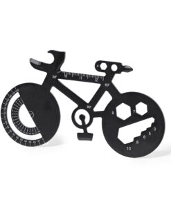 Handliches und nützliches Multifunktionswerkzeug aus Edelstahl in Fahrradform. Mit 16 Funktionen, unter anderem: Schlitz- und Kreuzschlitzschraubendreher, Schraubenschlüssel für Sechskantmuttern in verschiedenen Größen, Lineal, Winkelmesser und Flaschenöffner. Präsentiert in einer recycelten Papiertüte.