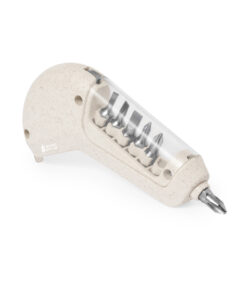Praktisches Multi-Tool Maßband aus Weizenstroh. Dieses vielseitige Werkzeug bietet 6 Funktionen, darunter: Zoll- und Zentimetermessgerät (Länge 1 Meter) und Schraubendreherfunktion mit 3 flachen und 3 Kreuzschlitz-Bits, die alle im Griff mit transparentem Fenster aufbewahrt werden. Mit Weizenstroh-Logo. Präsentiert in einer individuellen Box.Weizenstroh fördert die Verwendung natürlicher Rohstoffe und reduziert so die Schadstoffemissionen.