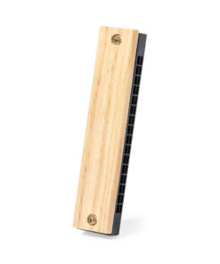 Mundharmonika mit Bezügen aus robustem, natürlichem Kiefernholz. Passende Tragetasche mit Kordelzug.