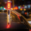 Notfalllampe im silbernen Kunststoffgehäuse, mit 1 weißen LED und 9 roten Alarmlichtern seitlich, Gurtschneider, Fensterhammer und magnetischem Sockel. Inklusive Batterien.