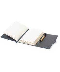 Nature Linie Faltbarer Notizblock aus 300D RPET Polyester. Mit festem Einband und Bambus-Detail auf dem Vorderdeckel. Aufklappbare Innenseite mit 80 Blatt einstreifigem Layout, passendem Stofflesezeichen und Kugelschreiberhalter (Kugelschreiber nicht im Lieferumfang enthalten). Erhältlich in einer Vielzahl von Farben, mit RPET-Logo auf der hinteren Umschlagseite.