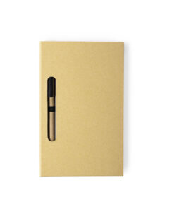 60 Blätter Notizblock. 25 Haftnotizen 5 x 7,5 cm. 125 Mini Haftnotizen 1,5 x 5 cm. Reclycling Pappe Kugelschreiber Inklusive