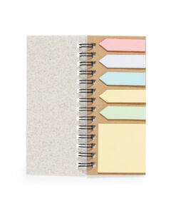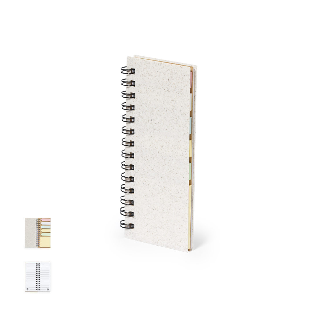 Notizbuch mit Weizenstroheinband. Mit Weizenstrohabzeichen auf dem hinteren Umschlag. Enthält:Weißer Ringordner mit 30 Blättern, einstreifigem Layout und Recycling-Aufkleber auf beiden Seiten.25 mittlere Haftnotizen.125 Mini-Haftnotizen in verschiedenen Farben. Hergestellt aus pflanzlichen Bestandteilen, um die Verwendung natürlicher Rohstoffe zu fördern und Schadstoffemissionen zu reduzieren.Präsentiert in einer individuellen, recycelten Tasche.