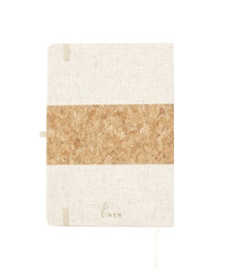 Notizblock mit Hardcover aus Kork und Leinen. Mit Stifthalter, Lesezeichen und 80 naturfarbenen Uniblättern. Präsentiert in einer individuellen Tasche.