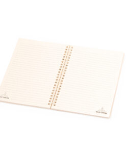 A5-Notizbuch mit doppeltem Metallringbinder und festem Einband aus recycelten Milchkartons. Innen mit 80 naturfarbenen, einstreifigen Layout-Blättern. Gummibandverschluss in Naturfarbe, mit Recycled Milk Carton-Logo auf der hinteren Umschlagseite und präsentiert in einer individuellen, recycelten Tasche.Milchkartons bestehen meist aus Karton und Aluminium. Während des Recyclingprozesses werden die verschiedenen Verpackungsmaterialien für die Wiederverwendung und Wiederverwertung getrennt und tragen so zu den unendlichen Möglichkeiten der Kreislaufwirtschaft bei. Dieses Material ist bekannt für seine hohe Wiederverwertbarkeit sowie für sein geringes Gewicht und seine Widerstandsfähigkeit.