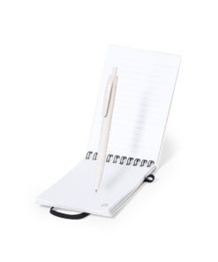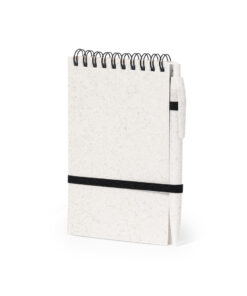 Ringbuch mit Einband aus Weizenschilf und passendem Stift, ebenfalls aus Weizenschilf. Kompaktes Format, mit elastischem Verschluss in elegantem Schwarz. Enthält 70 Blätter mit einstreifigem Layout und Öko-Design. Kugelschreiber mit Druckknopfmechanismus aus Weizenrohr und blauer Tinte. Inklusive Weizenstroh-Abzeichen. Präsentiert in einem individuellen, recycelten Etui.Hergestellt aus pflanzlichen Elementen, um die Verwendung natürlicher Rohstoffe zu fördern und Schadstoffemissionen zu reduzieren.