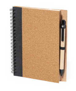 Notizbuch- und Kugelschreiber-Set aus Kork und recyceltem Karton. Das Ringnotizbuch zeichnet sich durch einen stabilen Einband aus Naturkork mit 80 Innenblättern im Single-Streifen-Layout aus. Inklusive Druckkugelschreiber mit Schaft aus recyceltem Karton und blauer Tinte. Präsentiert in einer recycelten Papiertüte.