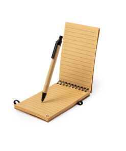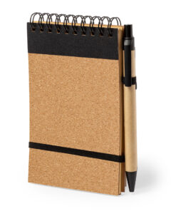 Notizbuch- und Kugelschreiber-Set aus Kork und recyceltem Karton. Das Ringnotizbuch zeichnet sich durch einen stabilen Einband aus Naturkork mit 80 Innenblättern im Single-Streifen-Layout aus. Inklusive Druckkugelschreiber mit Schaft aus recyceltem Karton und blauer Tinte. Präsentiert in einer recycelten Papiertüte.