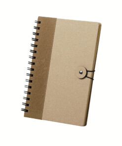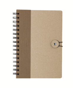 Geringtes Notizbuch aus unserer Naturlinie. Harte Einbände, aus recycelter Pappe. 80 Blätter im Streifen-Layout und Öko-Design.