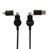Das Gehäuse des Schnellladekabels Oakland besteht aus 100% RCS-zertifiziert recyceltem TPE & Aluminium, das Kabel aus 100% recyceltem TPE-Innen und 100% recycelter PET-Außenschicht. RCS (Recycled Claim Standard) ist ein Standard zur Überprüfung des Recyclinganteils eines Produkts in der gesamten Lieferkette. Dieser Standard wird verwendet, wenn ein Teil des Artikels aus recycelten Materialien hergestellt wurde. 120cm langes Kabel mit 5 verschiedenen Anschlüssen: USB-C In,USB-A In,Typ-C Out,IOS Out und Micro USB Out. Daher auch mit Typ-C Ausgabegeräten verwendbar, wie z.B. neueren Generation von Telefonen und MacBook-Computern. Die USB-A-In/Out-Option sorgt dafür, dass man jedes Gerät von jeder Ausgangsquelle aufladen kann. Maximale Spannung von Typ-C zu Typ-C sind 45W. Urban Vitamin Artikel werden ohne PVC hergestellt. Die Verpackung mit besonders wenig Kunststoff verpackt. Gesamter Recyclinganteil: 52% bezogen auf das Gesamtgewicht des Artikels. Kann Laden und Synchronisieren.