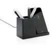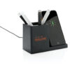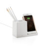 Kabelloses 10W-Schnellladegerät mit Stiftehalter aus RCS (Recycled Claim Standard)-zertifiziert recyceltem ABS. Gesamter Recyclinganteil: 78% basierend auf dem Gesamtgewicht des Artikels. Die RCS-Zertifizierung gewährleistet eine vollständig zertifizierte Lieferkette der recycelten Materialien. Der kabellose Ladebereich besteht aus FSC 100 Bambus. Mit zwei USB-Anschlüssen auf der Rückseite zum Aufladen per Kabel. Kabelloses Laden ist kompatibel mit Android der neuesten Generation, iPhone 8 und höher. Artikel und Zubehör PVC-frei. Inklusive 120cm Type-C Ladekabel aus RCS-zertifiziertem Recycling-TPE. Verpackt in FSC-Mix-Kraftkarton. Type-C Input: 5V/2A; 9V/2A; Wireless Output: 5V/1A;9V/1,1A; (10 W).