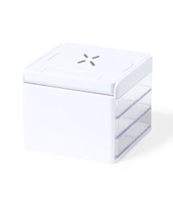 Ladegerät-Organizer mit Smartphone-Halterung und integriertem kabellosen 10-W-Ladegerät, kompatibel mit Geräten, die mit der kabellosen Qi-Ladetechnologie ausgestattet sind. Mit 3 transparenten, herausnehmbaren Ablagefächern. Ladestatusanzeige, inklusive 1 m langem Typ-C-Ladekabel. Rutschfeste Basis, präsentiert in einer individuellen Kraft-Design-Box, mit Bedienungsanleitung in Englisch und Spanisch. Hergestellt nach RoHS-Standards und unter Einhaltung der folgenden Sicherheitsanforderungen: Überhitzungsschutzsystem. Überladeschutzsystem. Blockiersystem zur Vermeidung von Kurzschlüssen.