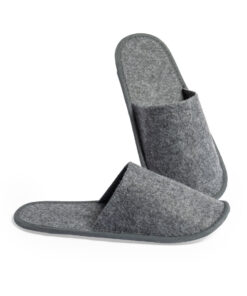 Ein Paar Unisex-Pantoffeln. Hergestellt aus widerstandsfähigem RPET-Filz, dem Ergebnis der Kombination des Recyclingprozesses von Kunststoffen mit der tausendjährigen Technik der Filzherstellung, was zu einem Öko-Trend-Material führt, das nicht nur recycelt, sondern auch wiederverwertet werden kann. Bequem gepolstertes Innenfutter mit verstärkten Nähten und in Einheitsgröße 36-43.