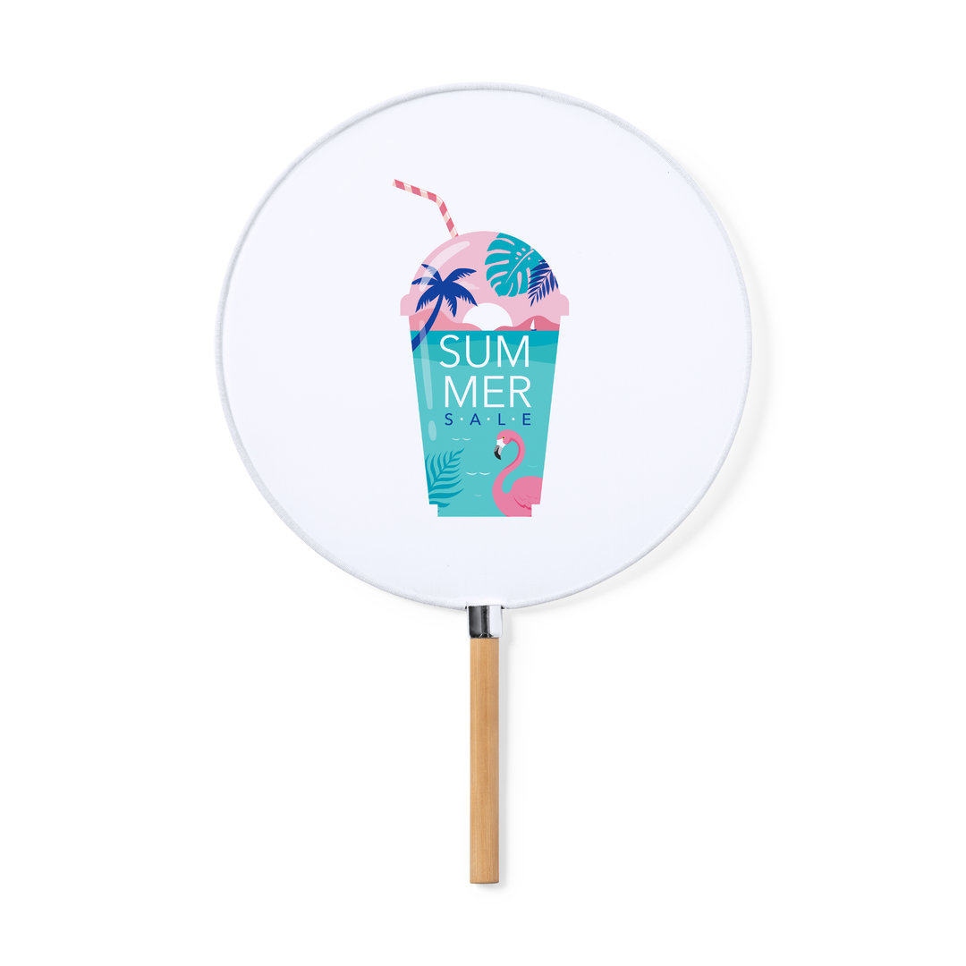 Stilvolles Pai Pai aus widerstandsfähigem Polyester, speziell für den Sublimationsdruck. Mit Bambusgriff und Chromdetail.