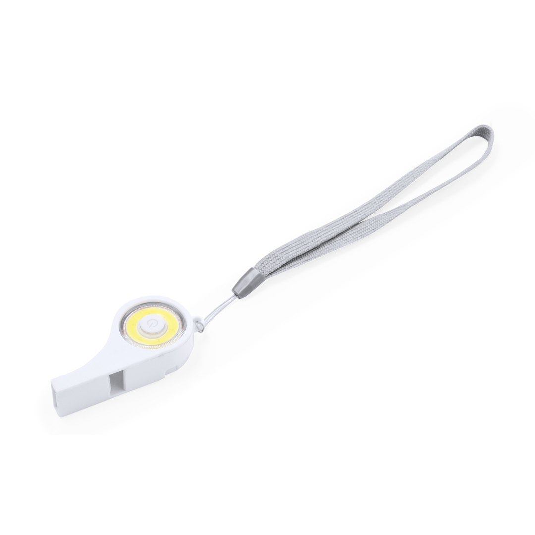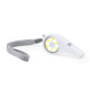 Geniale Mehrzweck-Pfeife mit integriertem Licht im Gehäuse. Hergestellt aus robustem ABS, mit 6 COB-Leuchten und mehreren Beleuchtungspositionen: fest mit zwei Intensitätsstufen und blinkend für bessere Sichtbarkeit. Mit Umhängeband zum bequemen Tragen und mit einer Knopfzellenbatterie betrieben (im Lieferumfang enthalten). Präsentiert in einer Kraft-Design-Box.