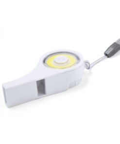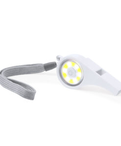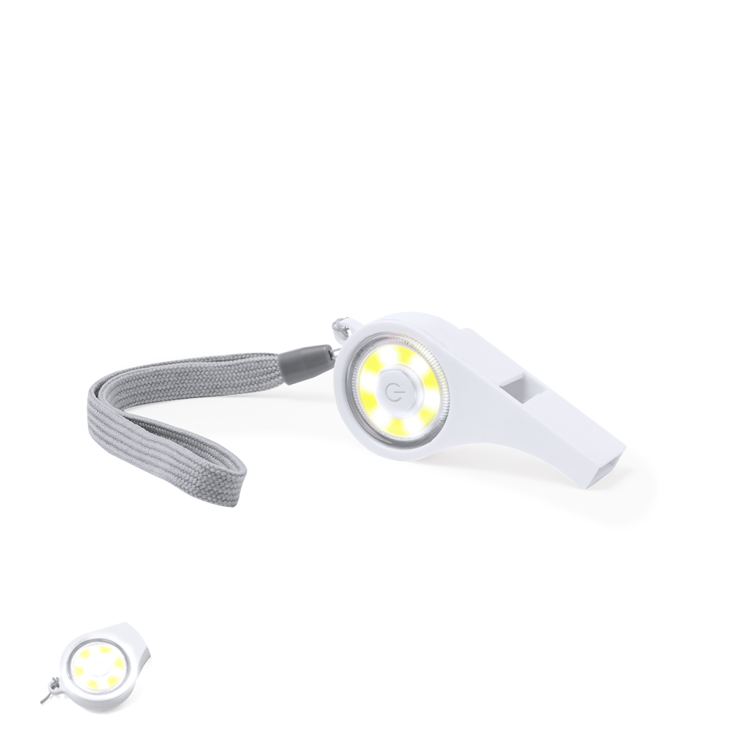 Geniale Mehrzweck-Pfeife mit integriertem Licht im Gehäuse. Hergestellt aus robustem ABS, mit 6 COB-Leuchten und mehreren Beleuchtungspositionen: fest mit zwei Intensitätsstufen und blinkend für bessere Sichtbarkeit. Mit Umhängeband zum bequemen Tragen und mit einer Knopfzellenbatterie betrieben (im Lieferumfang enthalten). Präsentiert in einer Kraft-Design-Box.