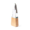 Gedenktafel aus dickem und widerstandsfähigem Glas mit einer Basis aus Naturholz. Wird in einer Schutzhülle aus Kraftpapier mit Magnetverschluss und Schaumstoff im Inneren geliefert.