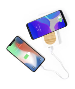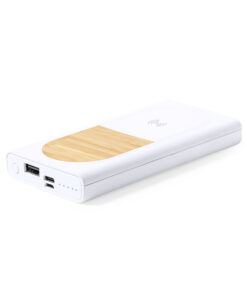 Linie „Natur“, externer Zusatzakku mit integriertem drahtlosen Ladegerät und 15-W-Schnellladefunktion. Gehäuse aus einer Kombination von Bambus und PLA (Polymilchsäure), die aus 100% natürlichen Ressourcen wie Maisstärke, Yucca oder Zuckerrohr gewonnen wird und am Ende ihrer Lebensdauer zu 100% kompostierbar ist. 8.000 mAh Kapazität, mit Ladestatusanzeige. Dualer Typ-C-Eingangs-/Ausgangsanschluss, Micro-USB-Eingang und 1 USB-Ausgang. Micro-USB-Ladekabel im Lieferumfang enthalten und kompatibel mit Geräten, die mit kabelloser Ladetechnik ausgestattet sind. Große Branding-Fläche und präsentiert in einer attraktiven Öko-Design-Box. Mit PLA-Emblem auf dem Artikel.Alle unsere externen Zusatzbatterien haben eine reale Kapazität und bestehen aus nicht recycelten Batterien der Klasse A mit einer Lebensdauer von mindestens 500 Ladezyklen, die den CE-Vorschriften entsprechen. Darüber hinaus werden sie gemäß den RoHS-Normen und unter Einhaltung der folgenden Sicherheitsanforderungen hergestellt: Überladungsschutzsystem der Powerbank. Vollständiges Entladeschutzsystem, das die Haltbarkeit der Powerbank erhöht. Blockiersystem zur Vermeidung von Kurzschlüssen. Konstantes Ladetransfersystem, entsprechend der Kapazität des Zielgeräts“.