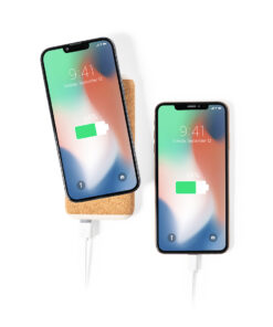 Externe Zusatzbatterie in der Naturlinie, hergestellt aus einer Kombination von Naturkork und Weizenstroh. Ladekapazität von 8.000 mAh. Mit integriertem drahtlosem Ladegerät 15W, mit Eingangs-/Ausgangsanschluss Typ C + USB-Ausgang. Präsentiert in einer individuellen Box im Öko-Design aus Kraftkarton.Alle unsere externen Zusatzakkus haben eine reale Kapazität und bestehen aus nicht recycelten Akkus der Klasse A mit einer Lebensdauer von mindestens 500 Ladezyklen, die den CE-Vorschriften entsprechen. Darüber hinaus werden sie gemäß den RoHS-Normen und unter Einhaltung der folgenden Sicherheitsanforderungen hergestellt: Überladungsschutzsystem der Powerbank. Vollständiges Entladeschutzsystem, das die Lebensdauer der Powerbank erhöht. Blockiersystem zur Vermeidung von Kurzschlüssen. Konstantes Ladetransfersystem, entsprechend der Kapazität des Zielgeräts.