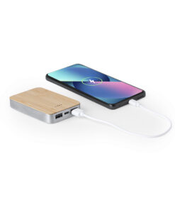 Externer Zusatzakku von 5.000 mAh, mit Gehäuse aus recyceltem Aluminium und Bambusoberfläche. Mit 2 USB-Ausgängen und zwei Typ-C-Eingang/ Ausgang Verbindung. Ladestatusanzeige und Typ-C-Ladekabel enthalten. Mit Recycled Aluminium-Logo und in einer individuellen Kraft-Design-Box präsentiert. Bedienungsanleitung in Englisch und Spanisch.USB C Eingang/Ausgang: 5V DC 2.4VUSB-Ausgang: 5V DC 2.4ARecyceltes Aluminium ist ein Material mit nahezu unbegrenzten Recyclingmöglichkeiten, das seine ursprünglichen Eigenschaften behält und bei diesem Prozess weniger Energie verbraucht.GRS-Zertifizierung (Global Recycled Standard), die den recycelten Ursprung des zur Herstellung des Produkts verwendeten Materials garantiert.Materialien wie Bambus fördern die Verwendung natürlicher Rohstoffe und reduzieren die Schadstoffemissionen. Es stammt von einer sehr widerstandsfähigen und vielseitigen Pflanze mit schnellem Wachstum und Regeneration, was es zu einer ausgezeichneten Alternative zu traditionellem Holz macht.Die Kapazitäten, die in allen unseren externen Zusatzbatterien angezeigt werden, sind real. Alle enthalten nicht recycelte Batterien der Klasse A mit einer Lebensdauer von mindestens 500 Ladezyklen und entsprechen den CE-Vorschriften.Darüber hinaus werden sie nach RoHS-Standards hergestellt und erfüllen folgende Sicherheitsanforderungen:Power Bank Überladung Schutzsystem.Komplettes Entladungsschutzsystem, das die Haltbarkeit der Powerbank erhöht.Blockiersystem zur Vermeidung von Kurzschlüssen.Konstantes Ladeübertragungssystem, in Übereinstimmung mit der Kapazität des Zielgeräts.