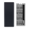 24 kleine Präzisionsschraubendreher. Magnetische Halterung der Schraubendreher. Öffnung der ABS-Box per Tastendruck.
