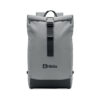Rucksack mit Rollverschluss aus reflektierendem 190T-Polyester. Laptopfach, Innenfach mit Klettverschluss, seitliche Reißverschlusstasche. Gepolsterter Rücken, Schultergurte und Boden. Unterer Teil aus recyceltem 600D Polyester.