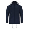 Unisex-Regenjacke mit hohem Kragen und abnehmbarer Kapuze. Die Kapuze hat anpassbare Kordeln für eine individuelle Passform und Klettverschluss zur Aufbewahrung. Ihr Innenfutter hat eine Silberbeschichtung. Mit zentralem Reißverschluss und passendem Zipper. Enthält: zwei Seitentaschen mit Klappen, elastische Bündchen für einen komfortablen Sitz und einen mit Kordeln verstellbaren Saum, der zusätzlichen Halt bietet. Verfügt über ein Gummiband im Inneren einer der Taschen, um das Zusammenfalten und Verstauen der Regenjacke zu erleichtern, wenn sie nicht in Gebrauch ist.