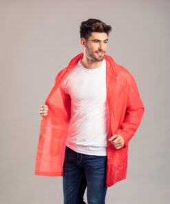 Regenmantel mit Knopfleiste aus widerstandsfähigem EVA mit hitzeversiegelter Oberfläche in vielen verschiedenen Farben. Mit Kapuze mit verstellbaren Kordeln sowie seitlichen Klappentaschen. Einheitsgröße für Erwachsene.