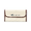 Reisetasche aus strapazierfähigem, naturfarbenem 600D mit braunem Kunstlederbesatz und Verstärkungen. Klappe mit Klettverschluss und einer Vielzahl von Innenfächern.