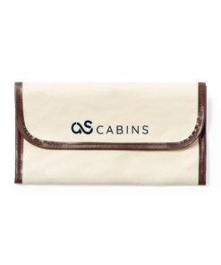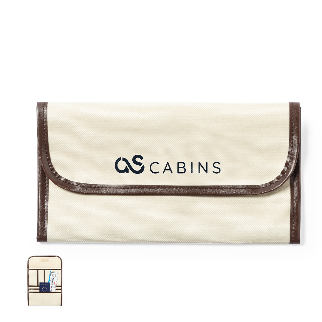 Reisetasche aus strapazierfähigem, naturfarbenem 600D mit braunem Kunstlederbesatz und Verstärkungen. Klappe mit Klettverschluss und einer Vielzahl von Innenfächern.