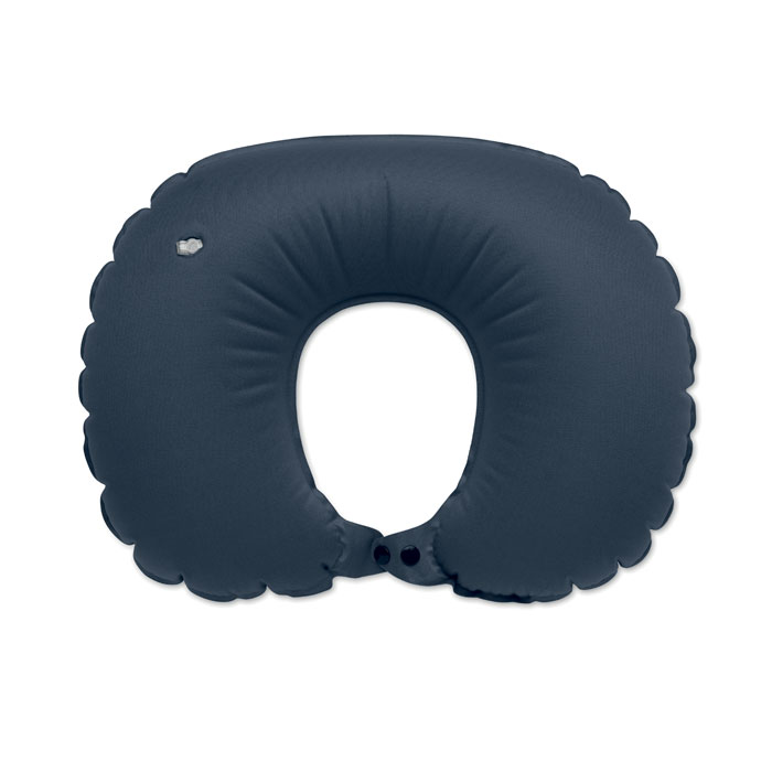 Schnell aufblasbares Reisekissen (50% PET und 50% TPU). Integrierte Pumpe und Luft-Ablass-Funktion. Inkl. Beutel im gleichen Material.