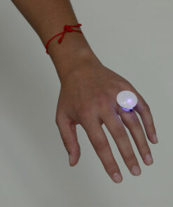 Origineller weißer Ring mit LEDs, ideal für Partys, Nachveranstaltungen oder thematische Feiern. Ihre 2 bunten LEDs erzeugen einen auffälligen und originellen Lichteffekt, betrieben von Knopfzellen – inbegriffen -. Mit diskretem Ein/Aus-Schalter an der Unterseite.
