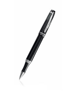 Tintenroller von Antonio Miró mit elegantem, zweifarbigem Design und geschmeidigem Metallschaft in schlichtem Schwarz. Mit dem Markenlogo unterhalb des Rings sowie Clip und Spitze in glänzendem Silber. Präsentiert in einer individuellen Schachtel in Schwarz mit dem Markenlogo. Blaue Tinte.