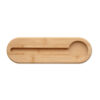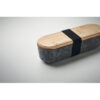 Federmäppchen aus RPET-Filz mit Deckel aus Bambus. Integrierter Handyhalter. Lineal: 5,5 Zoll und 13,5 cm. Elastisches Verschlussband.