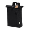 Rucksack aus recyceltem Canvas-Material. Hauptfach mit hoher Kapazität, mit Sicherheitsverschluss und Klettverschluss, sowie eine Fronttasche mit unsichtbarem Reißverschluss. Schnelle Zugriffstasche an der Seite und oben Griff, verstellbare Schultergurte und außen Etikett mit Recycled Cotton-Logo.