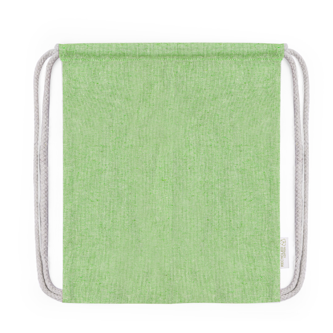 Rucksack mit Kordelzug aus recycelter Baumwolle 120 g/m2. Selbst schließende Schnüre aus Baumwolle, mit Öko-Label auf einer Seite und in einer breiten Palette von Naturfarben erhältlich. Belastbar bis zu 4kg Gewicht.