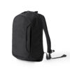 Rucksack aus strapazierfähigem Polyester, ausgestattet mit doppeltem Reißverschlussschieber und einer Vordertasche. Im Inneren befindet sich ein gepolstertes Fach für Laptops bis 15 Zoll und ein Fach für Tablets bis 10 Zoll. Auf der Außenseite verfügt es über eine Vordertasche für schnellen Zugriff und eine versteckte Tasche auf der gepolsterten Rückseite zur Aufbewahrung von Wertsachen, mit einem Riemen zur Gepäckbefestigung. Verstärkte Ecken sorgen für zusätzliche Haltbarkeit und ein Tragegriff mit stilvollen schwarzen Beschlägen ist im Lieferumfang enthalten. Schulter- und Rückengurte sind gepolstert und für mehr Komfort verstellbar. Präsentiert in einer einzelnen recycelten Tasche.