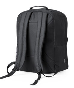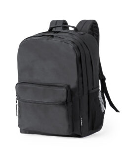 Rucksack aus strapazierfähigem 600D RPET. Er verfügt über zwei zentrale Taschen mit Doppelreißverschluss und zwei Fronttaschen für bequemen Zugang. Im Inneren hat es eine gepolsterte Tasche für einen Laptop bis zu 15 Zoll. Die Rücken- und Schultergurte sind gepolstert und verstellbar, mit atmungsaktivem Stoff. Er verfügt auch über einen oberen Riemen und eine seitliche Netztasche. RPET-Logo auf dem Etikett. Präsentiert in einer individuellen Recycling-Tasche.RPET-Material wird aus recyceltem Kunststoff hergestellt, um die Wiederverwendung von Kunststoffabfällen zu fördern und die Nachhaltigkeit des Planeten zu unterstützen.