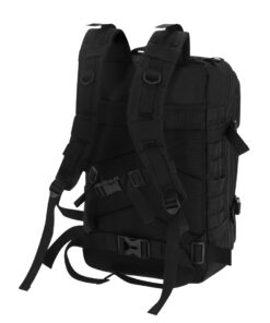 Taktische Rucksack aus robustem RPET 600D Polyester. Vorderseite mit mehreren Taschen, sowie elastischen Halterungen und Klettverschlüssen zur Aufhängung der notwendigen Zubehörteile während des Abenteuers. Hauptfach mit Doppelreißverschluss und mehreren Innenfächern für einen Laptop von bis zu 17 Zoll. Enthält verstärkte Ecken und einen Traggriff. Mit gepolstertem und verstellbarem Rücken und Schultergurten sowie vorderen Riemen für zusätzlichen Komfort. Etikett mit RPET-Zeichen.RPET-Material wird aus recyceltem Kunststoff hergestellt, um die Wiederverwendung von Plastikabfällen zu fördern und die Nachhaltigkeit des Planeten zu unterstützen.