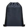 Kordelzug-Rucksack aus weichem PU kombiniert mit robustem 600D-Polyester. Mit funktionaler Fronttasche mit Reißverschluss und farblich passendem PU-Zipper.
