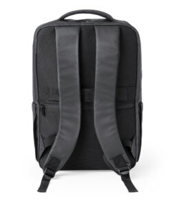Hochwertiger Rucksack von Antonio Miró aus widerstandsfähigem Kunstleder mit schlichtem Design in Schwarz. Mit doppeltem Reißverschluss, Vordertasche und verstärktem, gepolstertem Griff. Mit ergonomischer Polsterung an Rücken und Schultergurten verfügt es über ein gepolstertes Innenfach für einen Laptop bis 15 Zoll und für Tablets bis 10 Zoll. Zusätzlich mit einer diebstahlsicheren Tasche mit Reißverschluss auf der Rückseite. Innenhüllen für Stifte und Smartphone. Mit Markenlogo auf der Vorderseite.