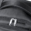 Hochwertiger Rucksack aus strapazierfähigem 600D Nyon mit schwarzem Finish. Hauptfach mit passendem Reißverschluss und doppeltem Zugband. Enthält 3 Außentaschen und 2 Seitentaschen, alle mit Reißverschluss. Polsterung an Griff, Rücken und Schultergurten, die verstellbar sind. Innen mit gepolsterten Fächern für Laptops bis zu 17″ und Tablets bis zu 12″. Befestigung auf der Rückseite für die Montage eines Trolleys.