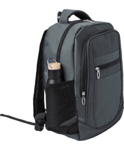 Rucksack aus strapazierfähigem 600D-Nylon. Verfügt über eine Haupttasche mit Reißverschluss und doppeltem Reißverschluss. Innen mit gepolsterten Taschen für Tablets bis 10 Zoll und Laptops bis 15 Zoll. Zwei zusätzliche Fronttaschen. Sowohl der Rücken als auch die Schultergurte sind gepolstert und verstellbar und bestehen aus atmungsaktivem Stoff. Es verfügt über einen bequemen gepolsterten oberen Riemen und seitliche Netztaschen. Erhältlich in stilvollen Farben, mit schwarzen Accessoires. Präsentiert in einer individuellen Tasche.
