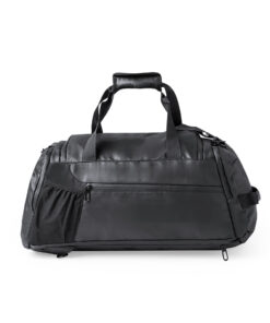 Rucksack/Tasche aus widerstandsfähigem und weichem PU-Leder. Sein zentrales Fach wird mit einem doppelten Reißverschlussschieber verschlossen. Es verfügt außerdem über eine unabhängige Seitentasche und eine zusätzliche auf der anderen Seite, beide mit Reißverschluss. An der Unterseite befindet sich eine Tasche speziell für Schuhe. Es enthält auch eine äußere Netztasche. Er bietet drei Tragemöglichkeiten: als Rucksack, mit gepolsterten, klappbaren Griffen; als Handtasche; oder als Umhängetasche, mit verstellbarem Schultergurt. Für ein elegantes Design sind die Reißverschlüsse dezent verdeckt. Präsentiert in einer individuellen Tasche.