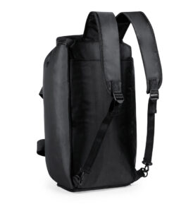 Backpack bag in resistant nylon 420D. Zippered closure compartment for footwear and side pocket with zipper closure. Main compartment with double puller zipper and reinforced carrying handles, with velcro closure. Adjustable, padded shoulder straps and padded back.