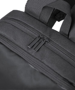 Rucksack aus elegantem PU-Leder. Ein urbanes Design, das eine gepolsterte Mitteltasche mit Doppelreißverschluss für Tablets bis 10 Zoll und Laptops bis 15 Zoll sowie eine Zweittasche umfasst. Darüber hinaus gibt es eine Fronttasche mit Reißverschluss und Schutzklappe. Der Rücken und die Schultergurte sind gepolstert, verstellbar und bestehen aus einem atmungsaktiven Stoff. Es verfügt über eine Trolley-Halterung und einen bequemen oberen Griff. Präsentiert in einer einzelnen recycelten Tasche.