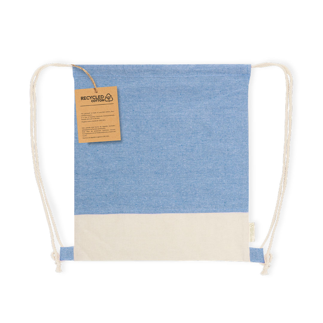 Seilrucksack aus recyceltem Baumwollmaterial 120 g/m2. Die selbstschließenden Schnüre sind ebenfalls aus Baumwolle mit Stoffschlaufen. Der Boden ist in einer zu den Schnüren passenden Naturfarbe gehalten, das Öko-Logo ist auf dem Seitenetikett sichtbar. Erhältlich in einer Reihe von Naturfarben. Widerstandsfähigkeit bis zu einem Gewicht von 6 kg.