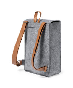 Design-Rucksack aus strapazierfähigem RPET-Filz, mit Reißverschluss, Tragegriff und Schulterriemen aus Kunstleder. Großes Hauptfach, Klappe mit verstellbaren Riemen und Metallschnallenverschluss. Mit verstellbaren Schulterriemen und RPET-Zeichen auf dem Außenetikett.RPET-Filz ist das Ergebnis der Kombination des Recyclingprozesses von Kunststoffen mit der jahrtausendealten Technik der Filzherstellung. Das Ergebnis ist ein Öko-Trendmaterial, das nicht nur recycelt, sondern auch wiederverwertbar ist.